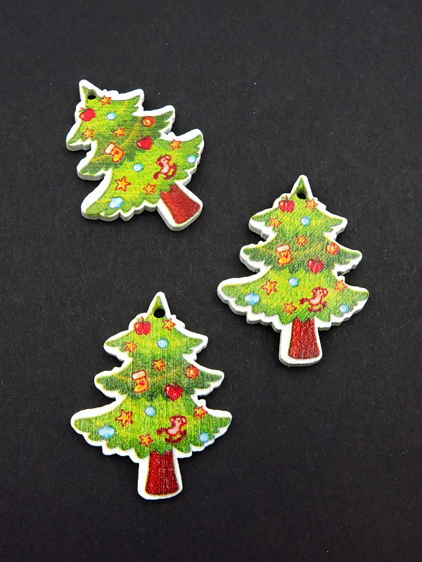 Дървена Елха Цветна 34х25x2.5мм отвор 2мм